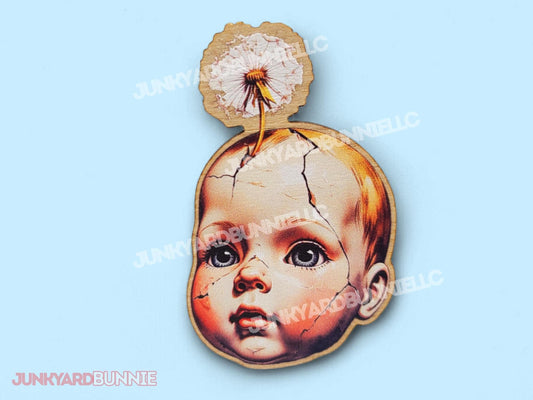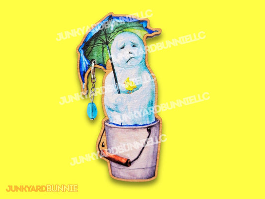 'Goodbye Winter' Melting Snowman Wooden Brooch