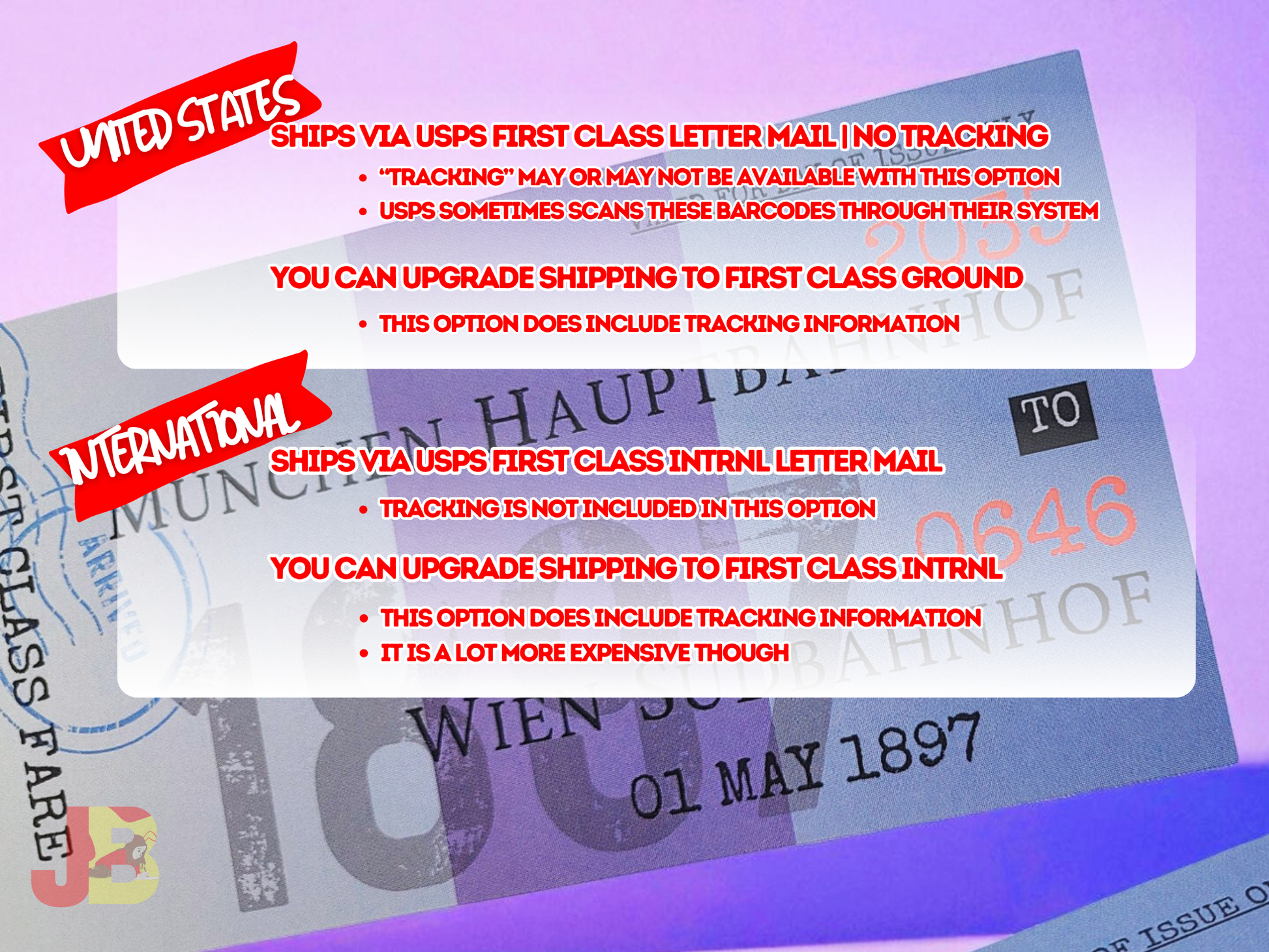Please refer to last photo for tracking information and upgrades for shipping - both domestic and international.