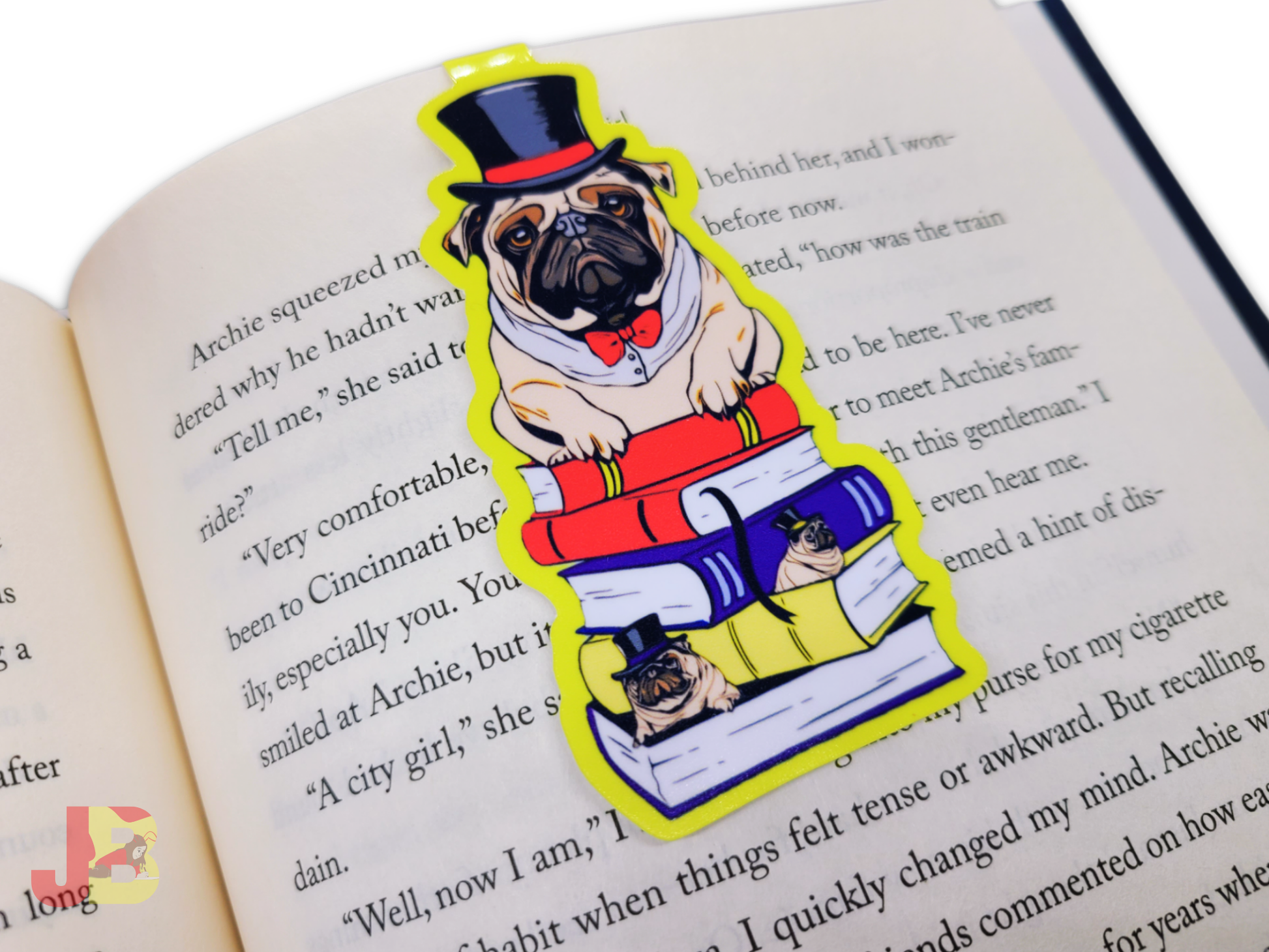 Calling all book lovers and pug enthusiasts! This isn't just a magnetic bookmark; it's a whimsical work of art that will bring a smile to your face every time you open your favorite novel with these dapper pugs perched delicately between the pages of your book.